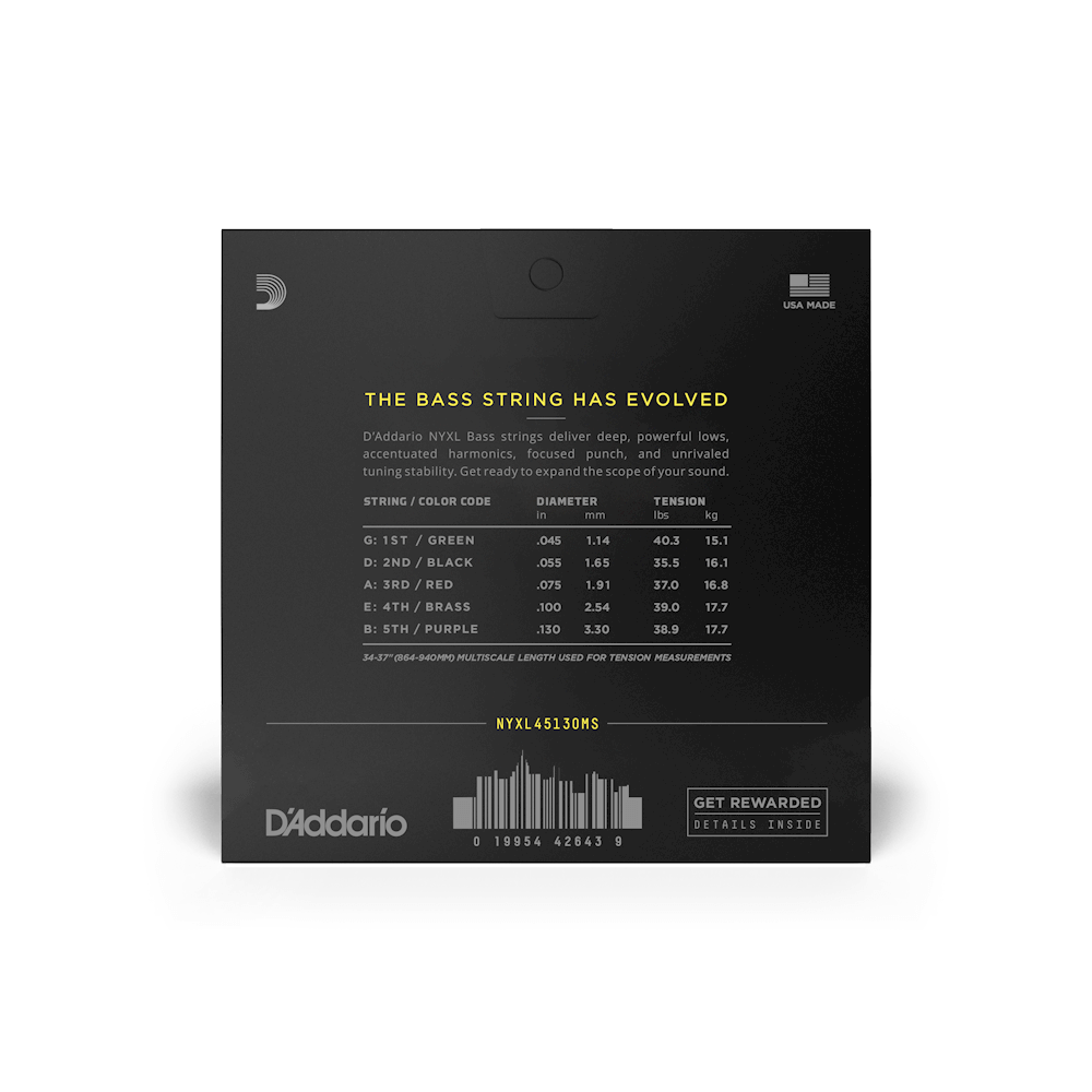 In stock now : D'Addario NYXL Bass Multiscale, 45-130 Regular Light